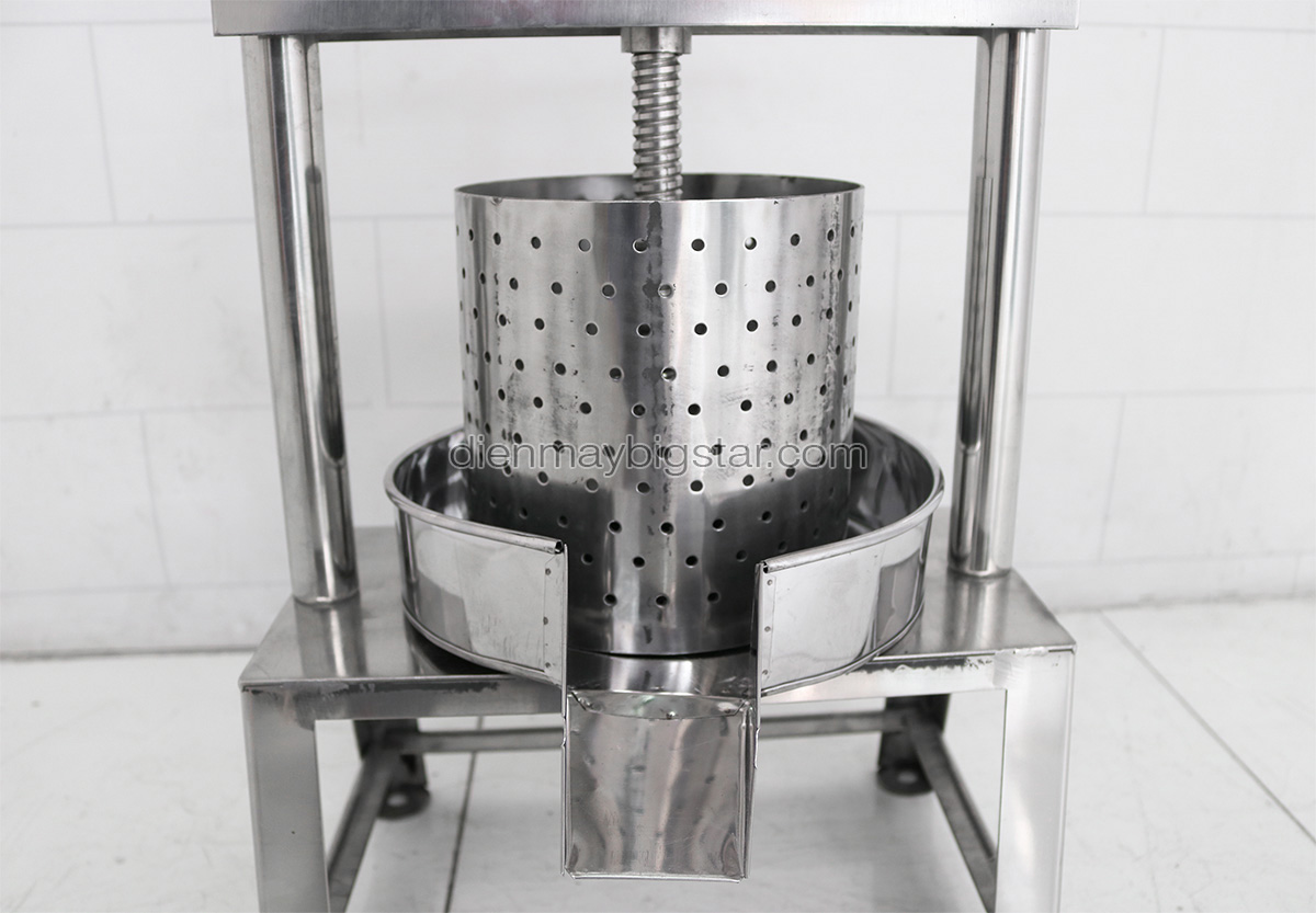 Khung máy được thiết kế chắc chắn, khó ngã đổ, tỷ lệ ép đạt 90% (1kg cơm dừa xay nhuyễn thu được 9 lạng nước cốt dừa).