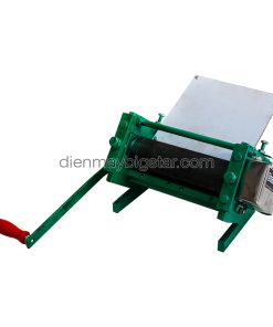 Máy hoạt động bằng tay quay, người dùng đưa bì heo vào máng nạp và quay tay để lưỡi dao cắt sợi.
