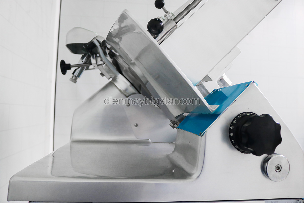 Bạn chỉ cần kẹp khối thịt lên bàn đỡ. Sau đó ấn nút khởi động lưỡi dao. Chỉ trong tích tắc là bạn đã có những lát thịt đều và mỏng.